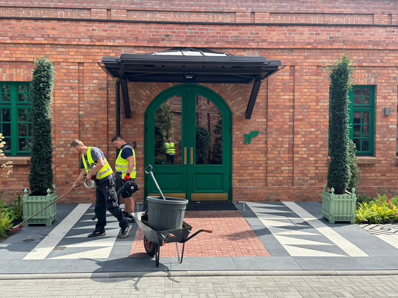 Niezwykle ciekawe zlecenie wykonaliśmy przy dużym zakładzie produkcyjnym w Bydgoszczy. Oprócz nasadzeń kompensacyjnych, czyli drzew sadzonych w miejscu tych wyciętych podczas budowy, Klient zamówił niepowtarzalne donice. Stylizowane na te w Wersalu ozdobne donice wykonano ze stali nierdzewnej lakierowanej proszkowo. Posadziliśmy w nich piękne drzewka iglaste. Efekt jest niesamowity!
